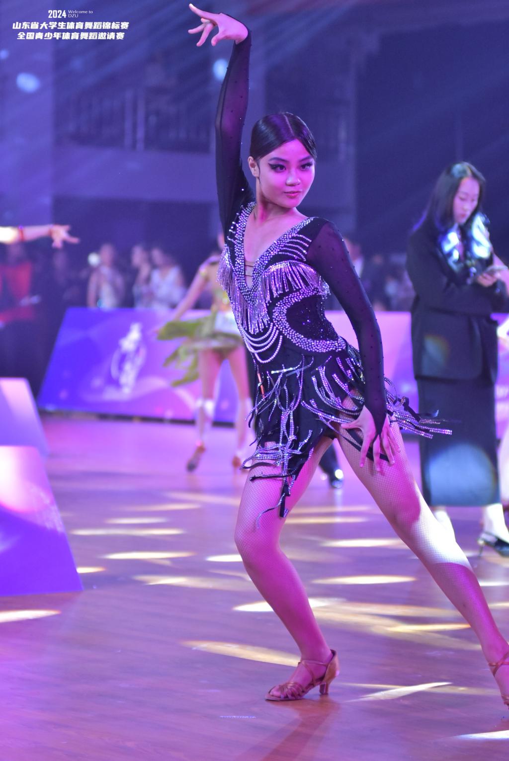 赛场上,他们以精准的步伐、优雅的舞姿和默契的配合,很好地诠释了体育舞蹈的力与美,选手们不仅展示了高超的舞技,还展现了积极向上、勇于拼搏的精神风貌。