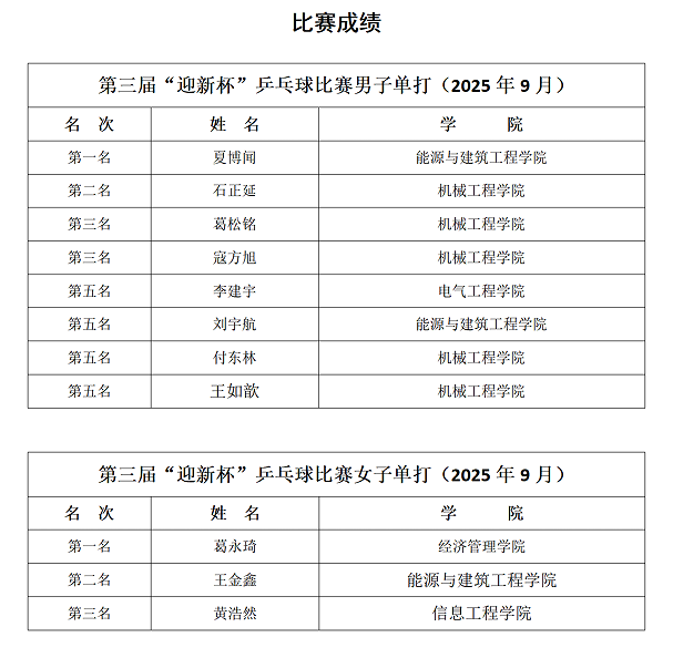此次“迎新杯”乒乓球比赛的成功举办,为同学们提供了释放青春活力、展现自我风采的广阔舞台,学生在比赛中深刻领悟并践行了奋勇拼搏、团结合作、追求卓越的体育精神,为今后的学习与生活注入了强大精神动力。