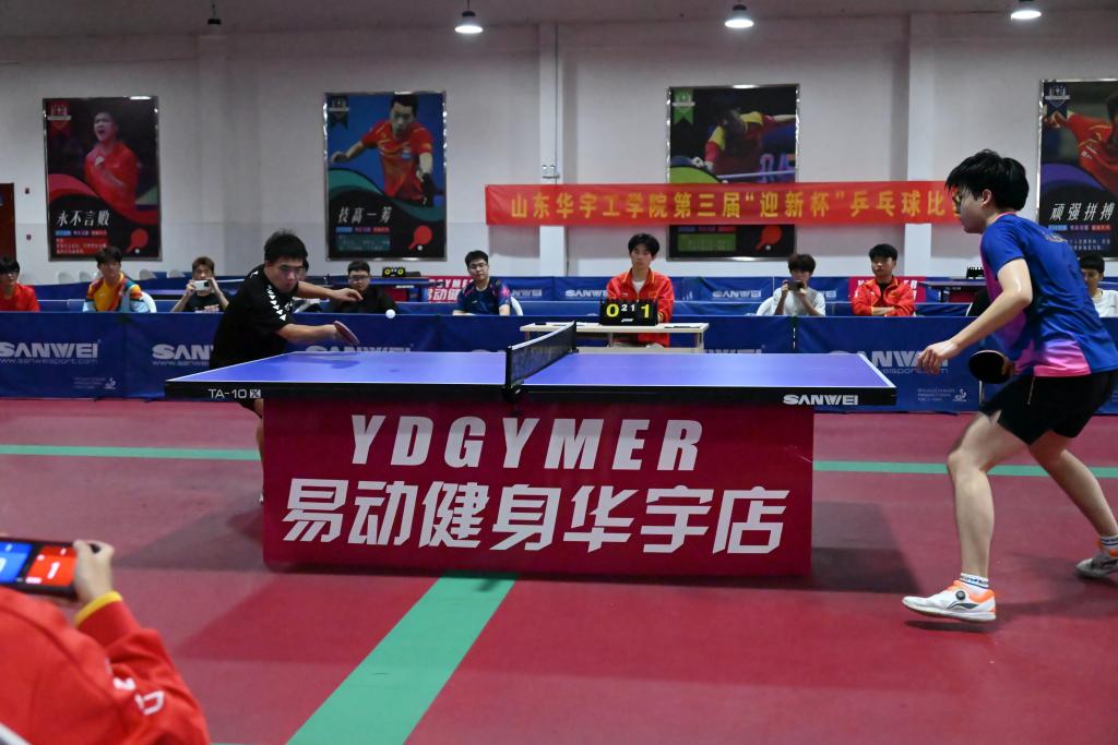 为丰富校园文化生活,由beat365官网体育教学部主办、华宇乒乓球协会承办的山东华宇工学院第三届“迎新杯”乒乓球比赛,于2025年9月27日上午9:00在大学生活动中心二馆顺利举办。比赛设有男子单打、女子单打两个项目。共计约150名学生参加比赛。