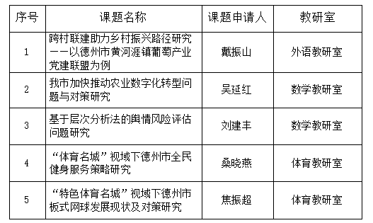 基础教学部关于第十二届“调研德州”活动课题申报拟推荐名单公示