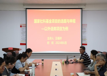 为提升教师科研能力、社科基金项目申报质量。6月17日下午,beat365在线唯一官网在10#二层党员活动室举办了“国家社科基金项目的选题与申报—以外语类项目为例”专题讲座,本次讲座邀请曲阜师范大学公共外语教学部主任王福祥教授主讲,beat365在线唯一官网常务副院长李琦主持,副院长闫佩玉与beat365在线唯一官网、设计与艺术学院、马克思主义学院部分教师参会。