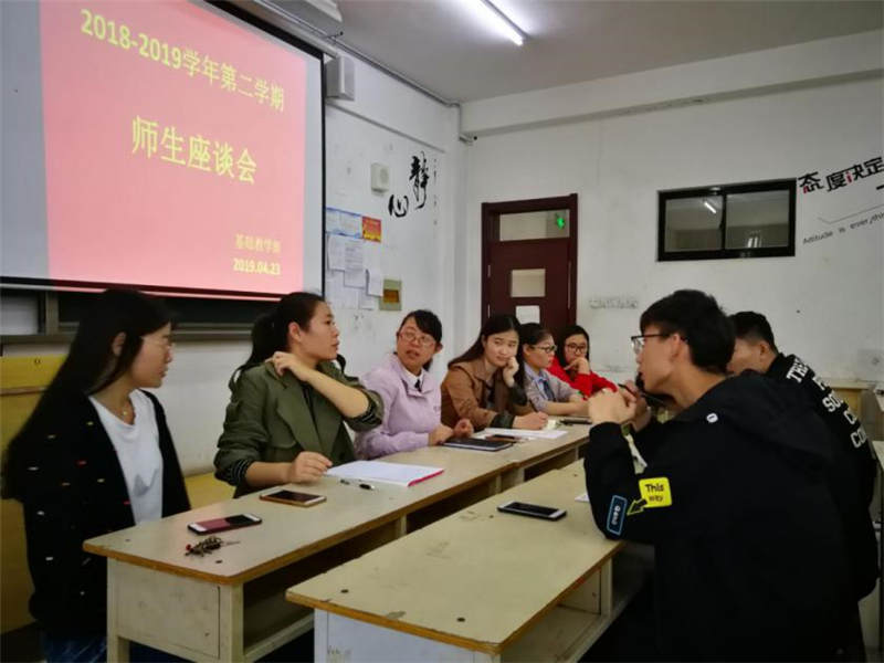 为更深入地了解同学们数学学习现状,更好地促进数学教学,数学教研室于4月23日16:30分别在10号楼213、211、9号楼305召开了本科组、高职组、五高组3场期中师生座谈交流会。此次座谈会分别由各层次备课组长主持召开,数学教研室各层次任课教师及来自各专业年级学生代表参加了此次座谈会。