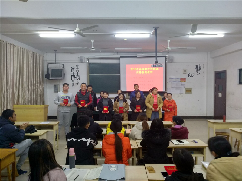 2018年接近尾声,回顾2018,伴随着beat365官网《“教师如何教好一门课”活动实施方案》的工作的开展,我部围绕课堂教学的各项工作也紧锣密鼓地展开。这一年是奋斗的一年,更是收获的一年,在“教师如何教好一门课”系列活动中,许多青年教师脱颖而出,在为部门增光的同时,也为自己的执教生涯奠定了良好的基础。会上,李主任总结了2018年基础教学部关于推进“教师如何教好一门课”活动的情况。根据学校要求,我部积极开展了教研室及部门层面的青年教师讲课比赛、说课比赛、新入职教师讲课比赛系列活动,并鼓励老师积极参与学校的板书设计比赛、课件设计大赛,在以上比赛中,我部教师均取得了优异的成绩。接着,基础教学部副主任李琦、基础教学部副主任刘兖峰,以及英语、数学、体育、物理教研室主任共同为在讲课比赛、说课比赛、新入职教师讲课比赛中取得优异成绩的个人进行颁奖并合影留念。李主任对青年教师在各项比赛中的出色表现给予了肯定,也为明年提出了更高的要求,希望大家再接再厉,再创佳绩。
