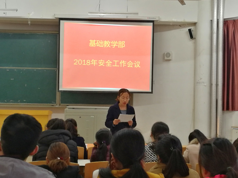 安全工作会议的召开明确了我部2018年安全工作的任务和责任, 安全工作的贯彻落实,对本部门教职工人身财产安全和“平安校园”建设起了保驾护航的作用。我部将继续以安全稳定工作为首要前提,维护我部良好的教学秩序,营造安全稳定的工作环境,大力推进平安和谐校园建设。