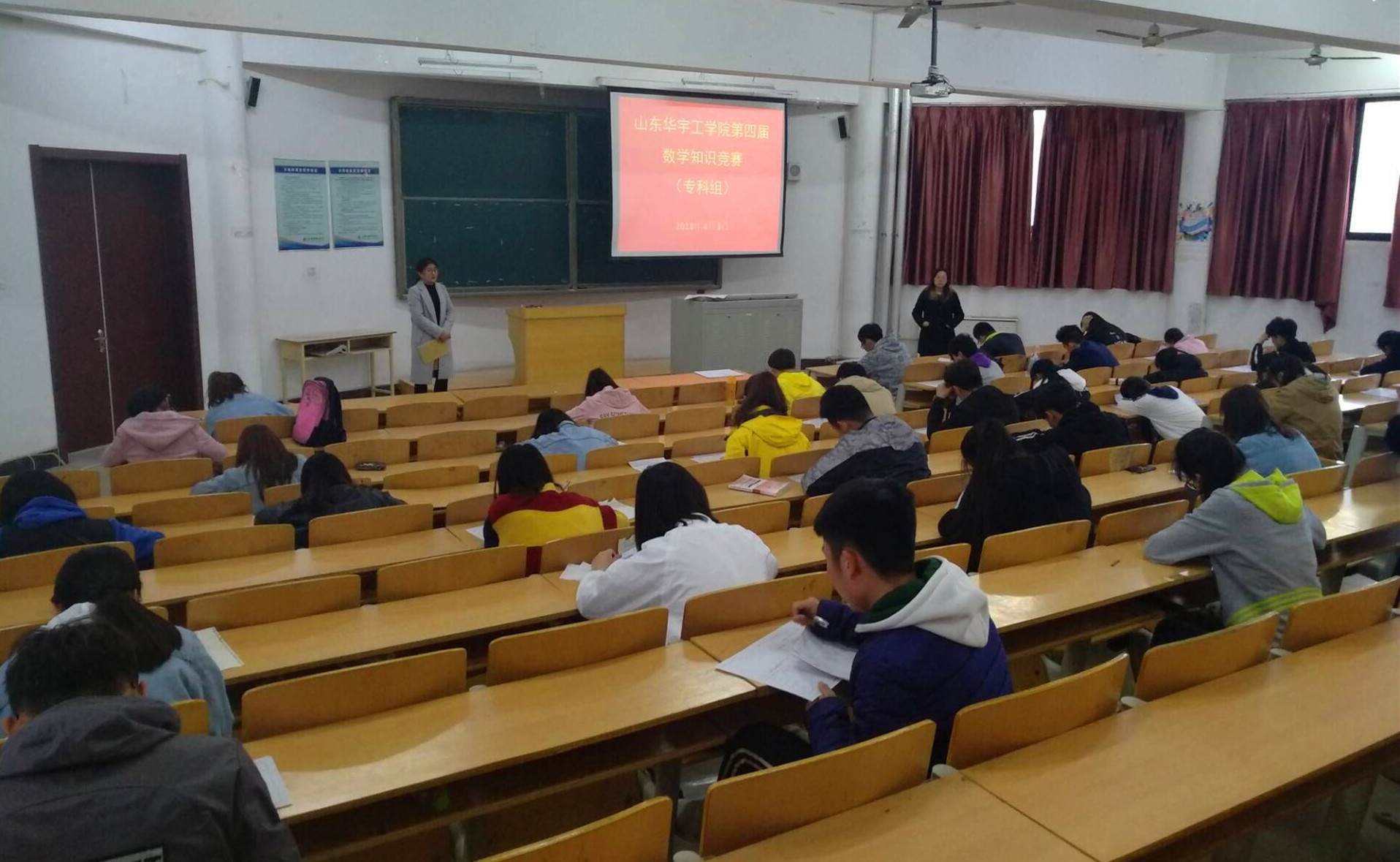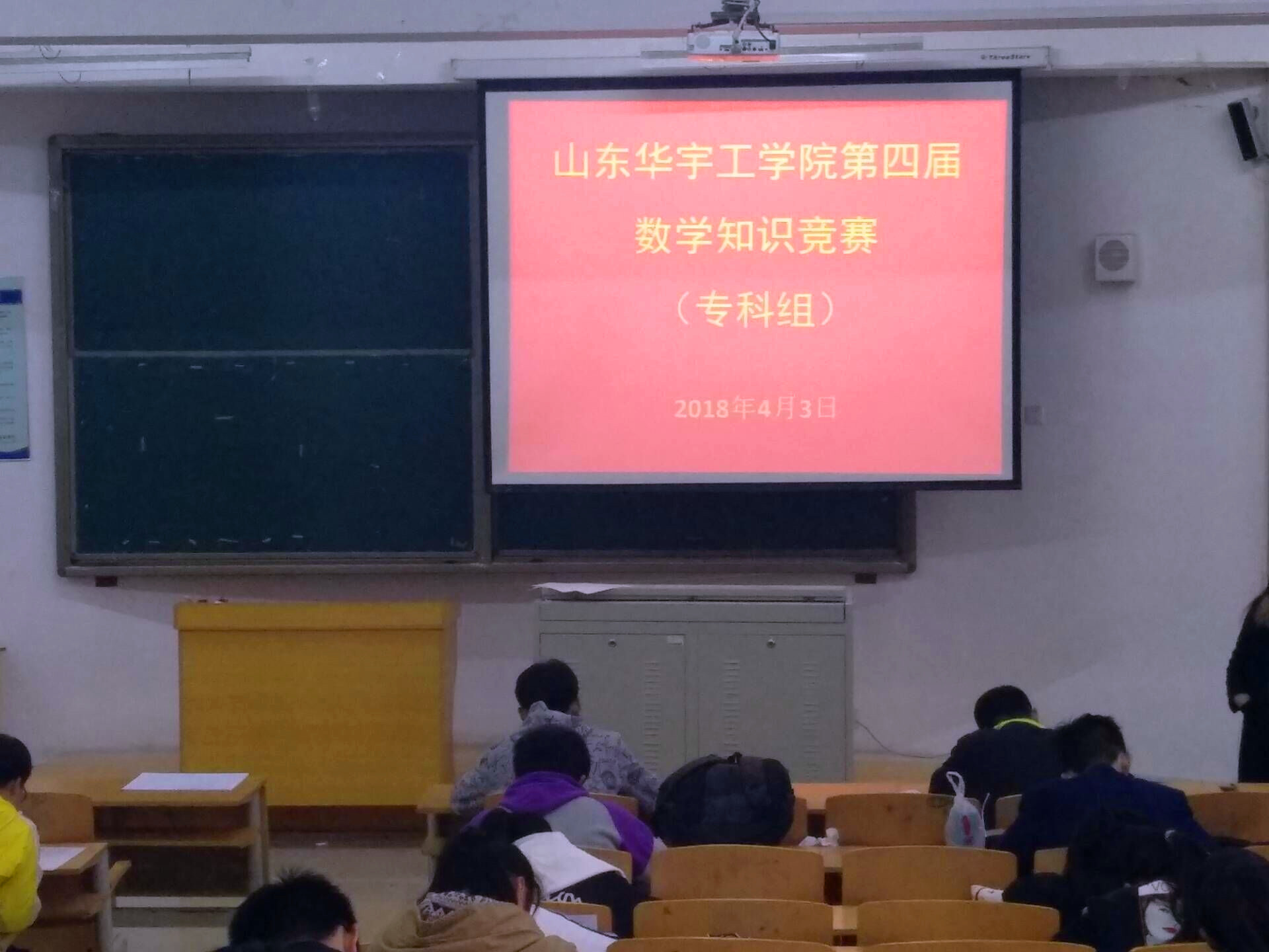 2018年4月3日下午16:10,由基础教学部组织的第四届数学知识竞赛(专科组)在10号楼201教室举行。此次竞赛共有107名学生报名参加。