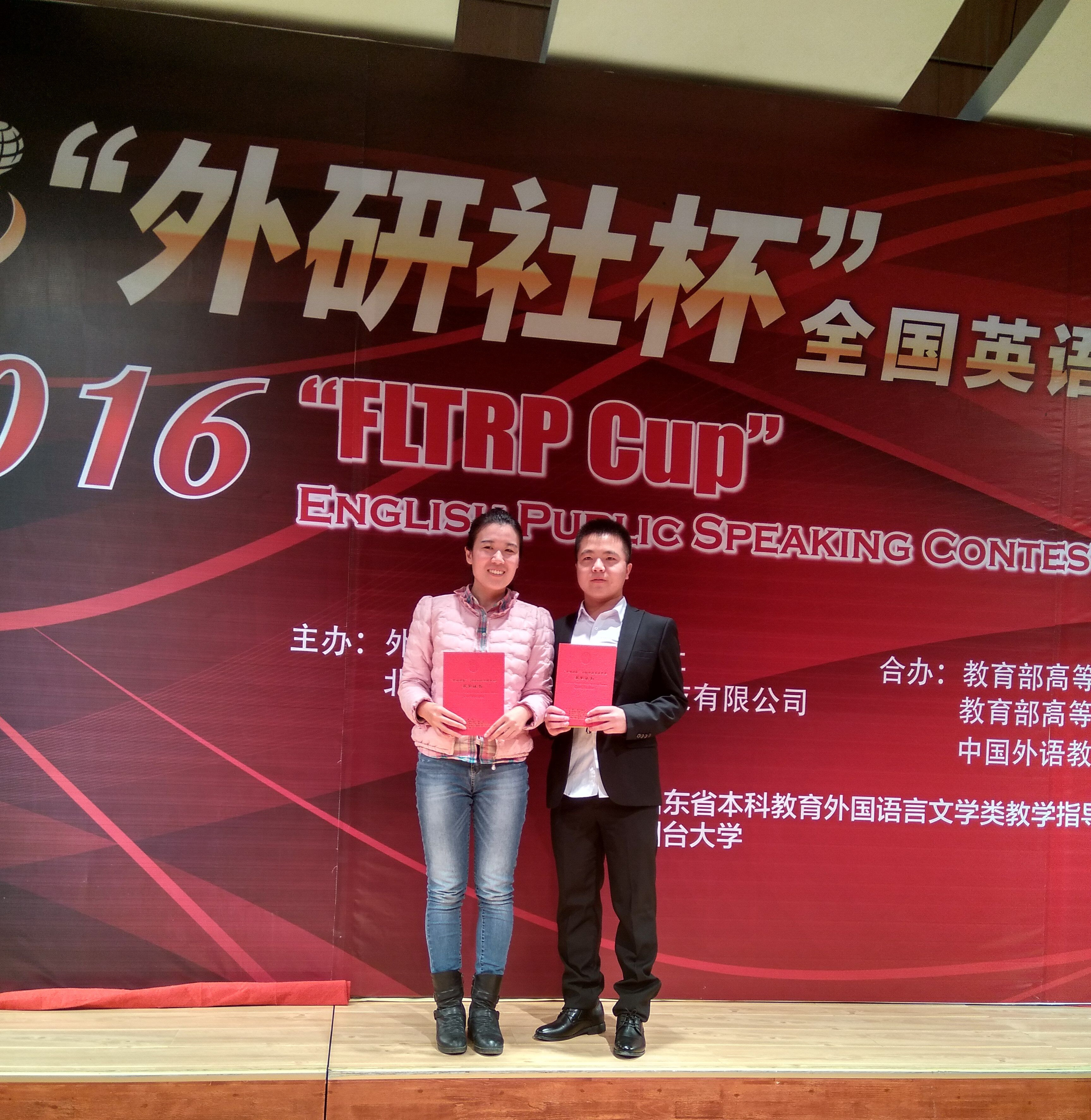 10月30日,2016“外研社杯”全国英语演讲大赛山东省复赛在烟台大学落下帷幕。这是beat365官网本科学生首次参加此次比赛,beat365官网老师王亚楠指导的学生王兴龙喜获大赛三等奖。