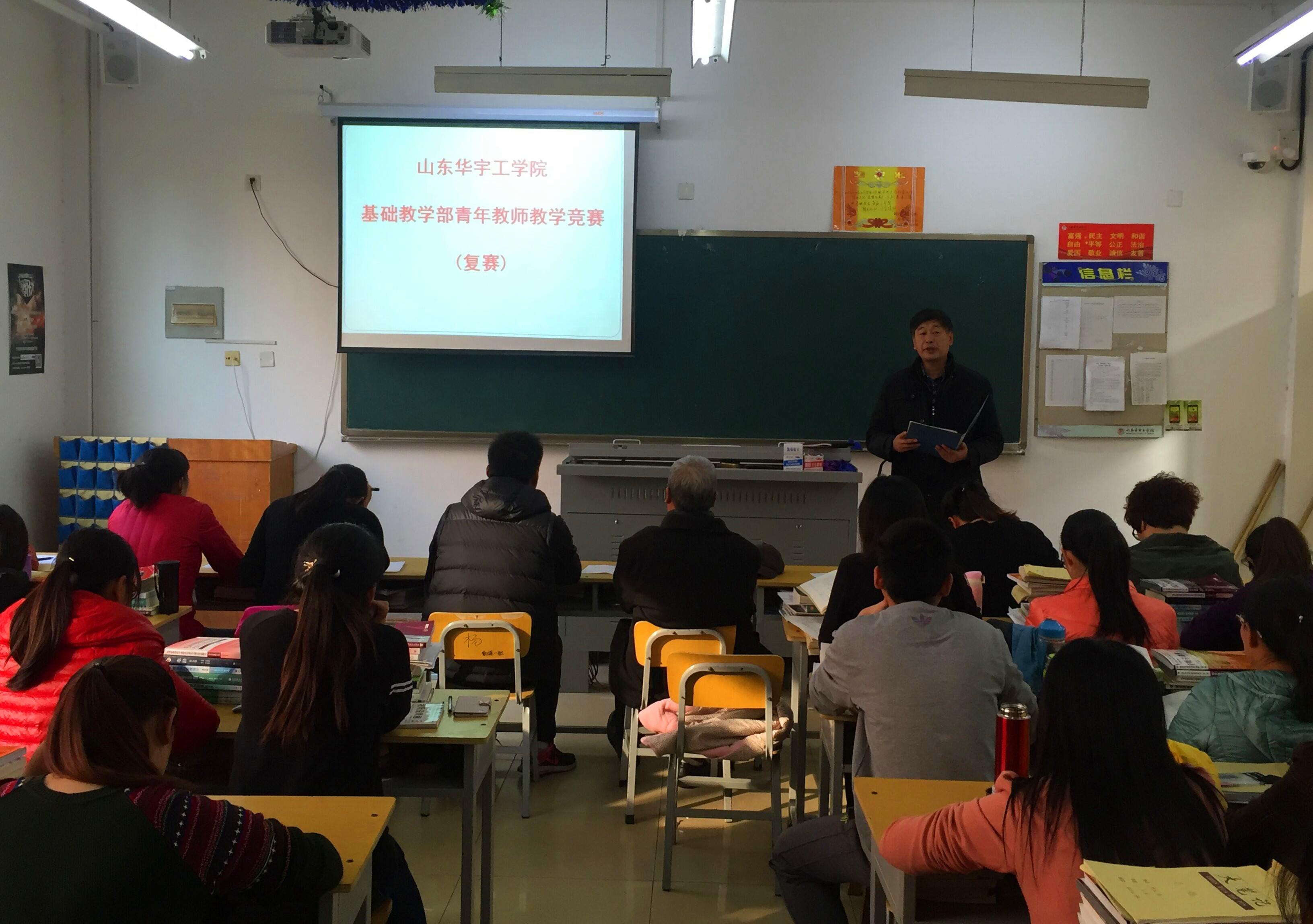 11月10日下午2:30,我部于8号楼104室举行了青年教师教学比赛(复赛),经过激烈的预赛角逐,数学教研室闫佩玉、申立平和英语教研室林佰新、王亚楠四名教师进入了复赛。