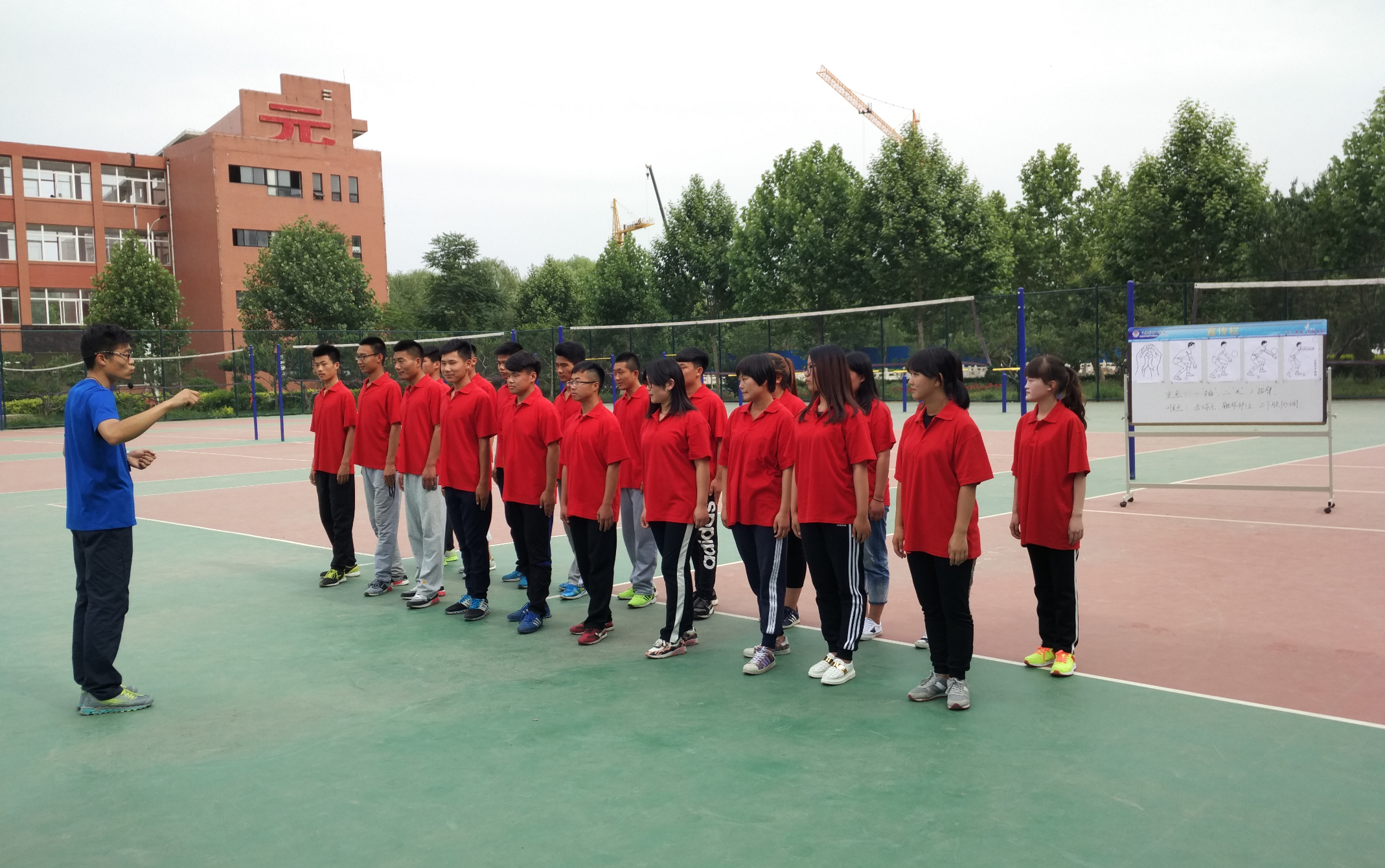 为全面了解入职教师的教学水平,进一步促进青年教师的专业成长,5月26日下午,体育教研室在学校排球场开展“青年教师教学成果汇报”为主题的教研活动。全体体育教师参加,于寅生老师作为教师代表为大家进行了示范。