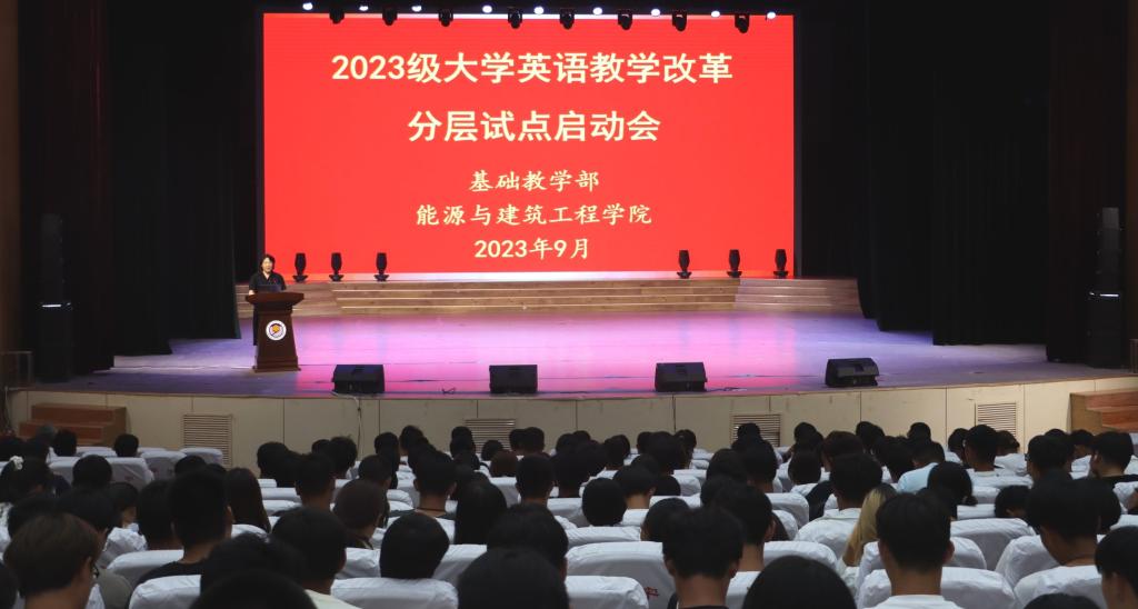 为进一步推动beat365官网大学英语分层教学试点工作的开展,明确教学任务和目标,保证试点班级学生对大学英语的教学模式、教学方法有充分地了解,2023年9月22日下午16点,基础教学部在国际文化交流中心组织召开大学英语教学改革分层试点启动会。此次会议由外语教研室主任刘伟伟主持,基础教学部主任刘瑞平、主任助理门顺德、试点班大学英语教师、能源与建筑工程学院学管科长王强老师和2023级10个试点班400余名学生共同参加了此次会议。