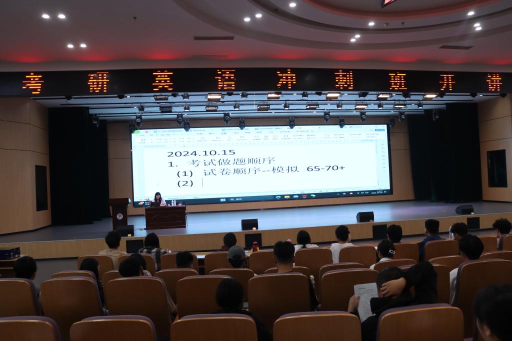 周老师凭借其深厚的学术底蕴和丰富的教学经验,精心准备了针对性很强的教学内容,旨在帮助考生深入理解考研英语的题型特点及解题策略。在两次讲座中,周老师针对2024年考研真题,详细分析了考研英语(一)和英语(二)的命题规律与考查重点,为考生指明了备考的方向。此外,她结合真题,细致讲解了各类题型的解题方法和策略,并通过真题演练与复盘,使考生在实战中领悟技巧、提升能力。周老师的讲解深入浅出,语言生动幽默,赢得了学生们的热烈掌声。在互动环节,同学们积极提问,周老师耐心解答,现场气氛活跃而有序。通过这两场辅导,同学们不仅获得了宝贵的知识和技能,更增强了备考的信心和动力。
