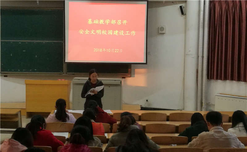 为贯彻落实《山东华宇工学院安全文明校园建设实施方案》的要求,全面提高我部安全能力管理水平。10月22日下午,基础教学部在10号楼F201召开了安全文明校园建设工作专题会议,本次会议由基础教学部副主任李琦主持,基础教学全体教师参加了此次会议。