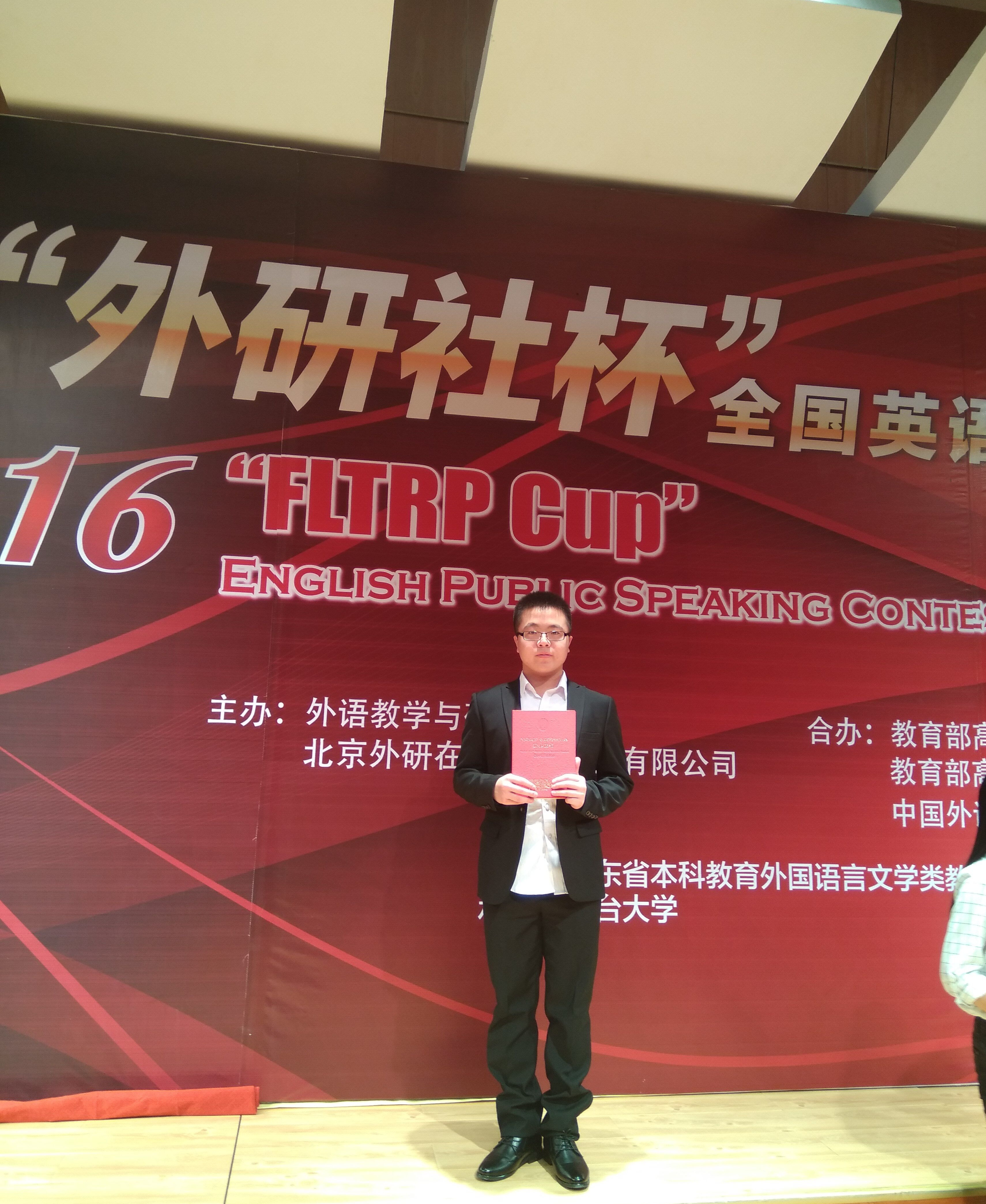 10月30日,2016“外研社杯”全国英语演讲大赛山东省复赛在烟台大学落下帷幕。这是beat365官网本科学生首次参加此次比赛,beat365官网老师王亚楠指导的学生王兴龙喜获大赛三等奖。